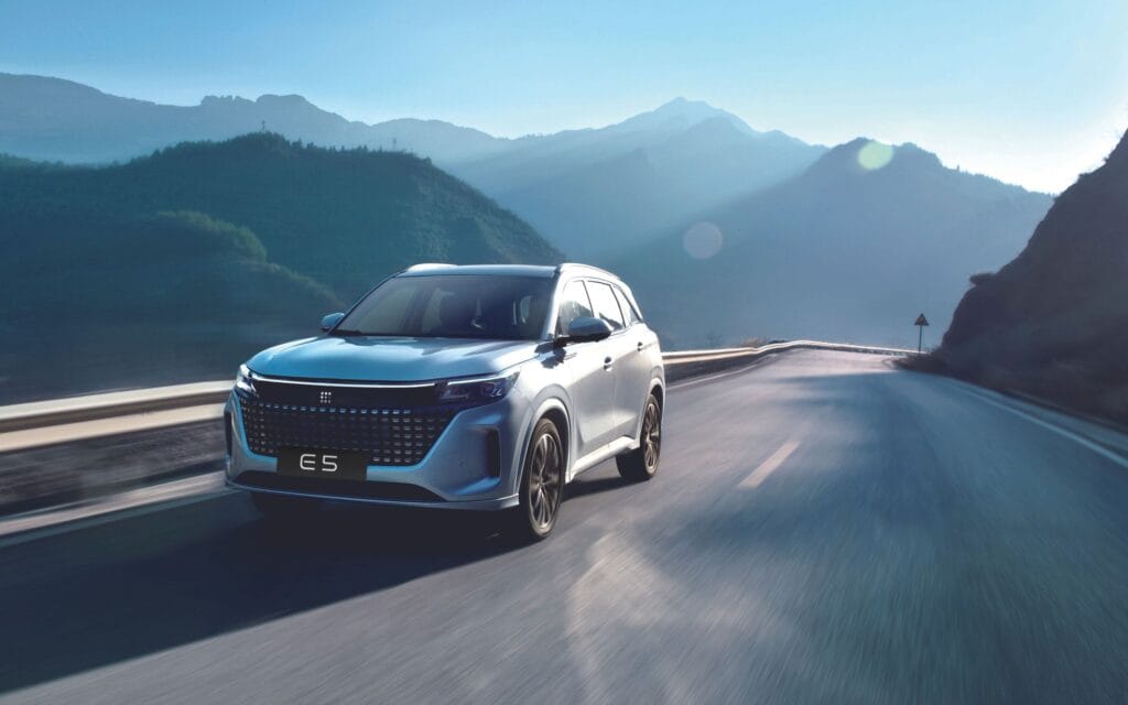 Секој елемент на Е5 е направен да остави траен впечаток! Неговата динамична предна решетка беспрекорно се интегрира со елегантни LED фарови, создавајќи впечатлив визуелен потпис што ја отелотворува модерната софистицираност. Внимателно извајаните линии на каросеријата течат без напор од напред кон назад, нагласувајќи го спортскиот и енергичен карактер на возилото. Додека препознатливите алуминиумски тркала додаваат допир на луксуз, прикажувајќи го E5 како совршен спој на перформанси, стил и иновации.