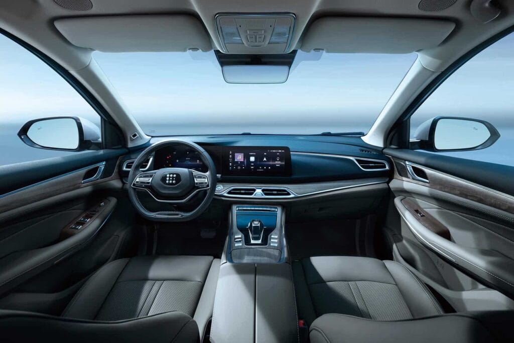 E5 PHEV нуди префинет ентериер со кожни седишта со мек допир, елегантни шевови и амбиентално осветлување што создава мирна, луксузна атмосфера.