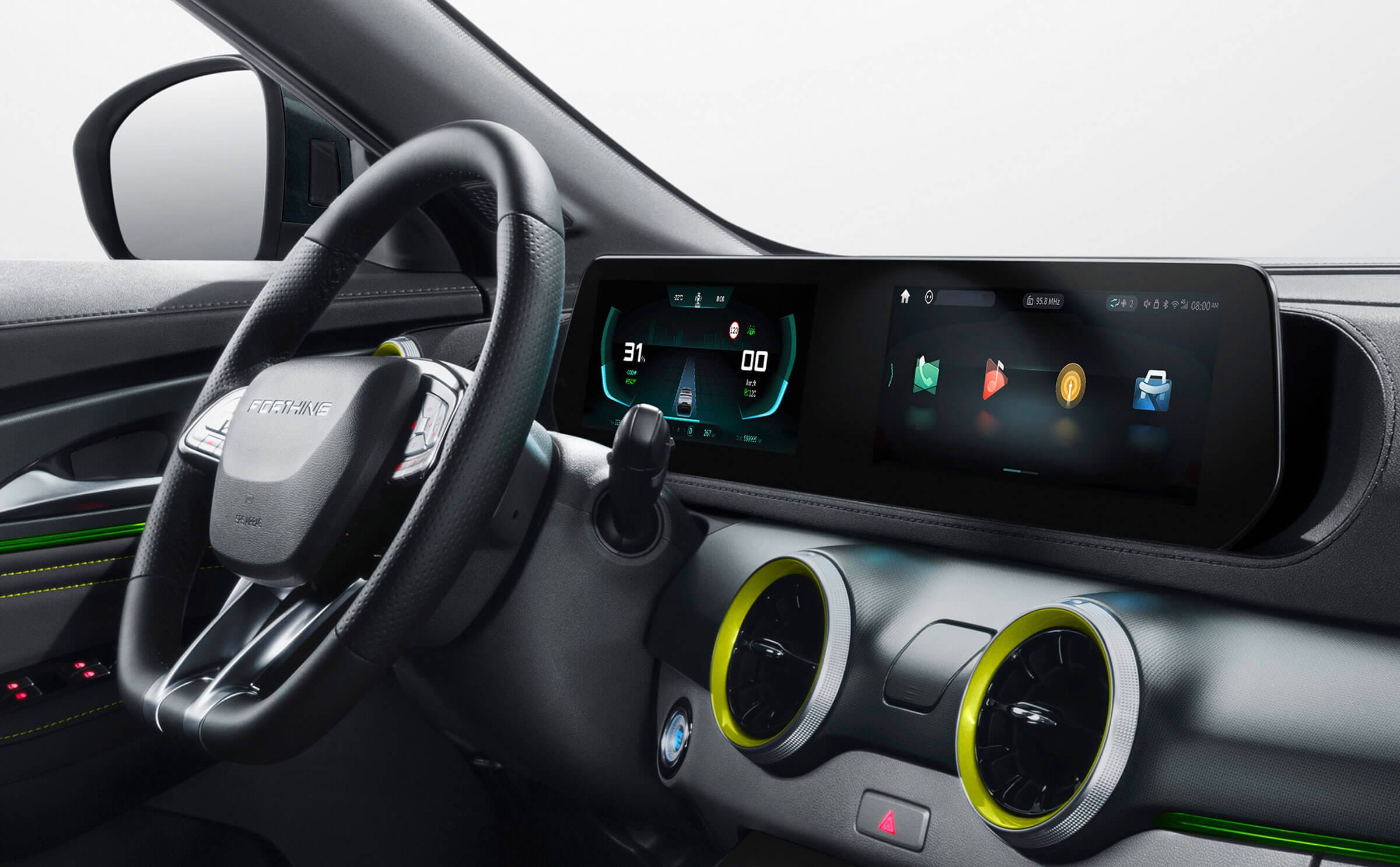 Целосно електричниот Friday се одликува со елегантен, но спортски ентериер со врвни материјали, дигитална контролна табла и амбиентално осветлување.