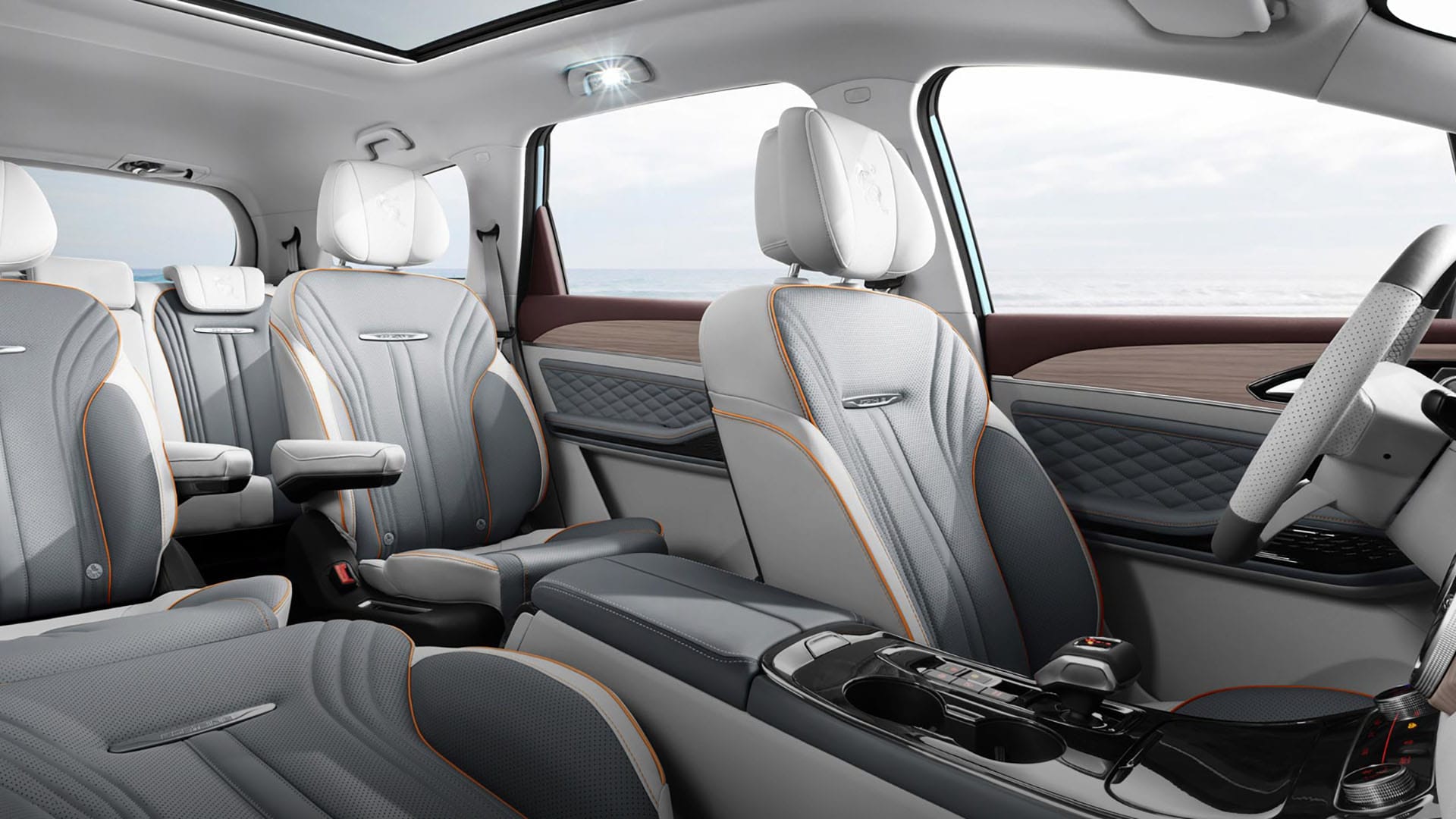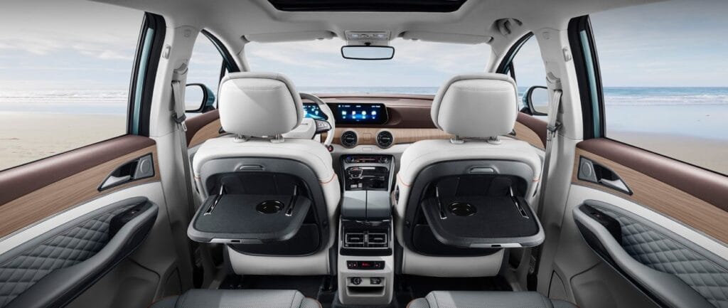 Индивидуалните преклопливи маси и електрично прилагодливите седишта од втор ред со греење и вентилација нудат премиум комфорт